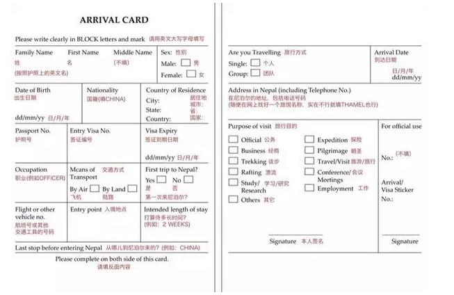 截止2017年2月,外国人出境印度时,不需要额外填写出境卡。